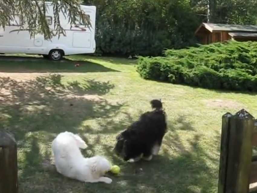 Quand deux chiens aussi massifs que les Nizinny s'amusent, cela ressemble fort à de la lutte Gréco-Romaine. Ici, le jouet n'est qu'un petit prétexte pour que ces deux Nizinny se lancent dans une bataille amicale. Le plaisir de se retrouver est réel, preuve d'une belle complicité et d'une cohabitation réussie.
