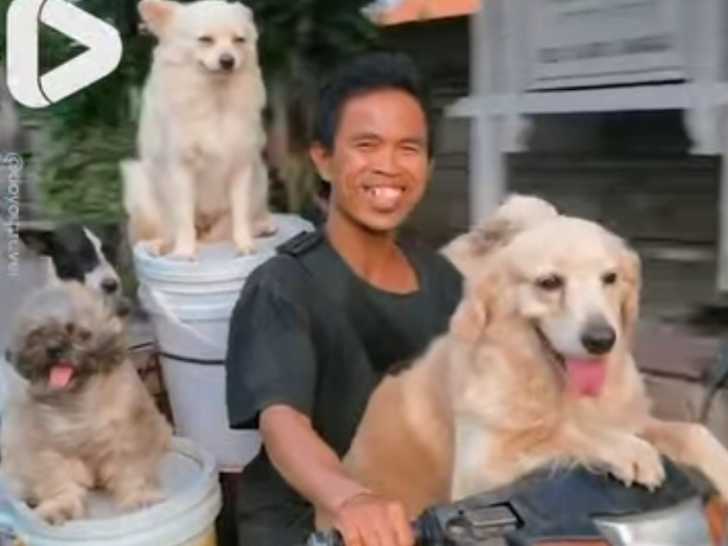 De nombreux chiens semblent avoir un goût prononcé pour les promenades en scooter, et ceux-ci ne font pas exception ! Dans une scène aussi étonnante qu’amusante, un conducteur transporte pas moins de six chiens sur son deux-roues : un installé à l’avant, deux à droite, deux à gauche et un dernier à l’arrière. Il semble exister une complicité joyeuse entre lui et eux : loin d’être inquiets, ils semblent au contraire apprécier pleinement l’instant.
