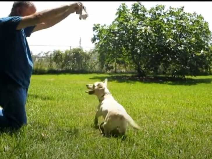 Le maître de cette Dachsador, nommée Sugar, l'a emmenée se promener dans un parc. D'abord, il marche avec elle en laisse ; elle se montre obéissante et reste bien au pied. Puis, il s'amuse à lui lancer son jouet, une petite peluche. Sugar est issue d'un croisement entre un Labrador Retriever et un Teckel.