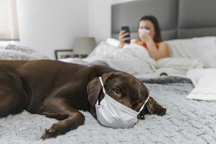 En revanche, même si on ne sait pas exactement comment le chien qui a été diagnostiqué positif fin février 2020 à Hong-Kong a été contaminé, il ne semble pas nécessaire de protéger le visage de son animal avec un masque, comme cela est recommandé pour les humains : ce serait à la fois vraisemblablement inutile pour lui, et un gâchis alors que des personnes en ont elles réellement besoin.